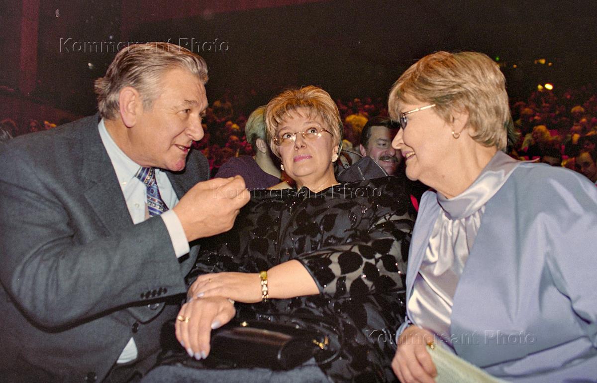 Вечер памяти "Гайдай всегда Гайдай", посвященный 80-летию кинорежиссера Леонида Гайдая, в Большом зале Союза кинематографистов России. Актер Александр Белявский (слева) и вдова Леонида Гайдая, актриса Нина Гребешкова (справа) во время вечера.