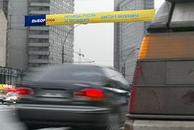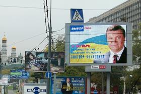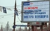 Наружная предвыборная реклама на улицах Москвы с текстом в поддержку Виктора Януковича. "31 октября украинцы России выбирают президента Виктора Януковича".