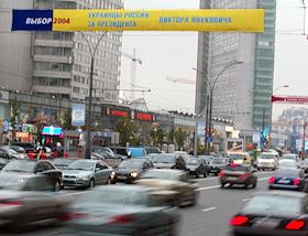 Наружная предвыборная реклама на Новом Арбате с текстом в поддержку Виктора Януковича. "Украинцы России за президента Виктора Януковича".