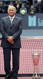 Российский теннисист Николая Давыденко (справа) и президент Федерации тенниса России Шамиль Тарпищев (слева) на церемонии награждения на Международном турнире "Кубок Кремля - 2004" в спортивном комплексе "Олимпийский". Николай Давыденко впервые выиграл московский турнир.
