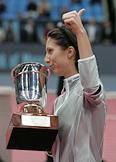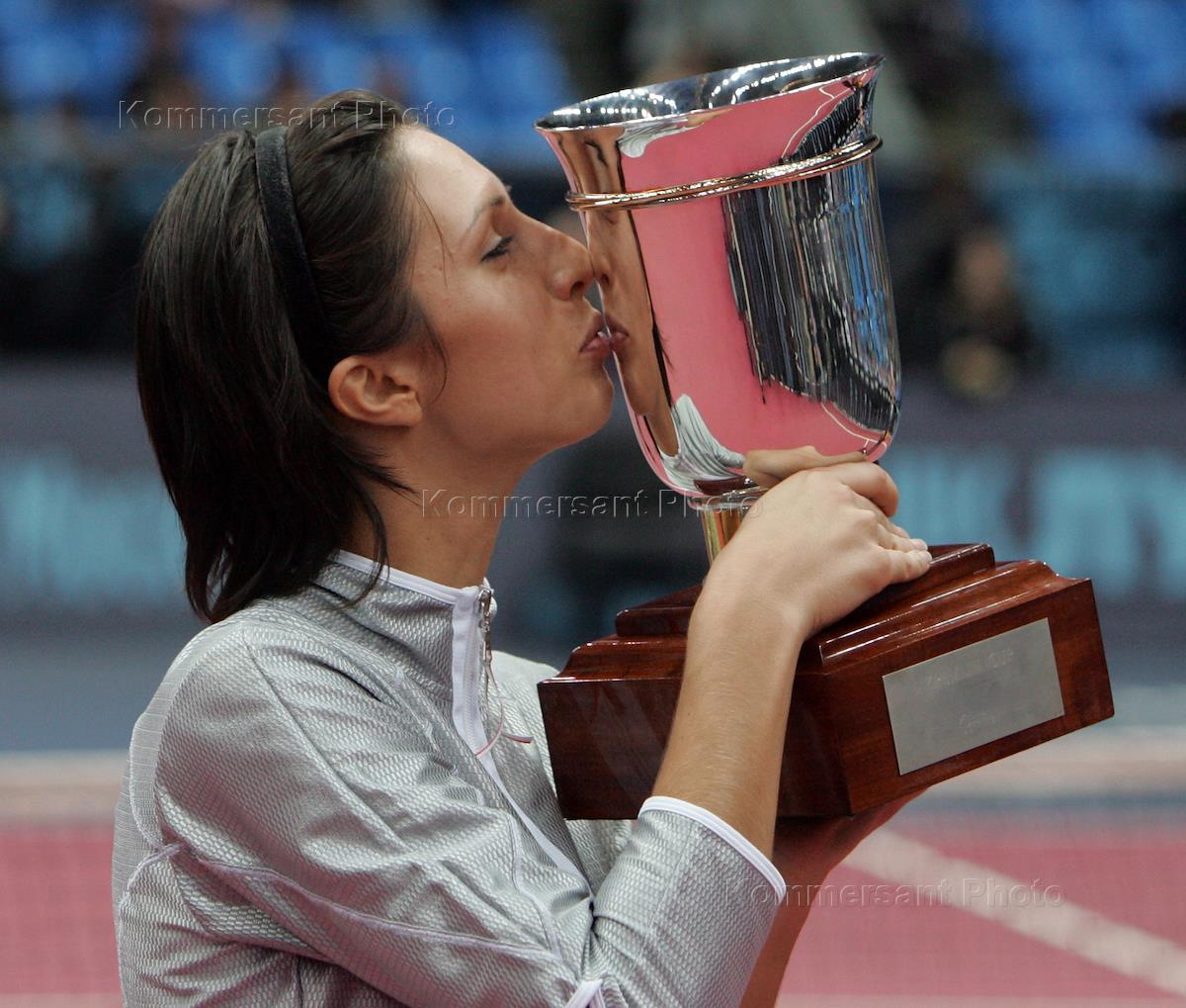 Российская теннисистка Анастасия Мыскина на церемонии награждения на Международном турнире "Кубок Кремля - 2004" в спортивном комплексе "Олимпийский". Анастасия Мыскина завоевала Кубок Кремля второй раз подряд.
