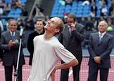 Российский теннисист Николая Давыденко на церемонии награждения на Международном турнире "Кубок Кремля - 2004" в спортивном комплексе "Олимпийский". Николай Давыденко впервые выиграл московский турнир.