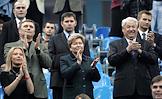 Бывший председатель Правительства России Михаил Касьянов на трибуне болельщиков Международном турнире "Кубок Кремля - 2004" в спортивном комплексе "Олимпийский".