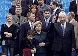 Бывший председатель Правительства России Михаил Касьянов (слева) и первый Президент России Борис Ельцин (справа) с супругой Наиной Ельциной (в центре) и дочерью Татьяной Дьяченко на Международном турнире "Кубок Кремля - 2004" в спортивном комплексе "Олимпийский".