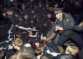 В центре Минска оппозиция устроила несанкционированный митинг с требованием отмены результатов республиканского референдума по изменению конституции, однако акция была пресечена сотрудниками правоохранительных органов. В воскресенье 17 октября в Белоруссии состоялись парламентские выборы (не прошел ни один кандидат от оппозиции) и референдум за предоставление президенту Белоруссии Александру Лукашенко возможность баллотироваться в третий раз (и далее неограничено)("за" - проголосовало 77,4% белорусов). Разгон сотрудниками правоохранительных органов митинга оппозиции.