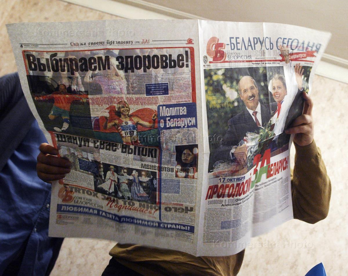 Разворот спецвыпуска газеты "Советская Белоруссия - Беларусь сегодня", посвященный референдуму за предоставление президенту Белоруссии Александру Лукашенко возможность баллотироваться в третий раз.