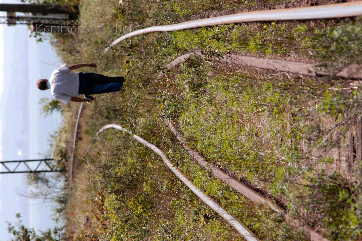 Восстановление железнодорожного пути в районе российско-абхазской границы.