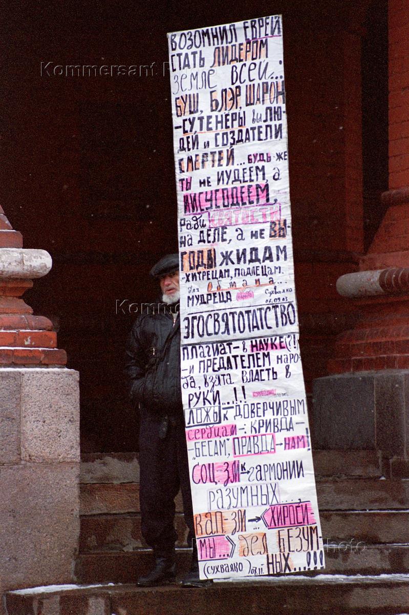 Участник митинга у здания бывшего Центрального музея В.И. Ленина на площади Революции (ныне филиал Государственного Исторического музея).