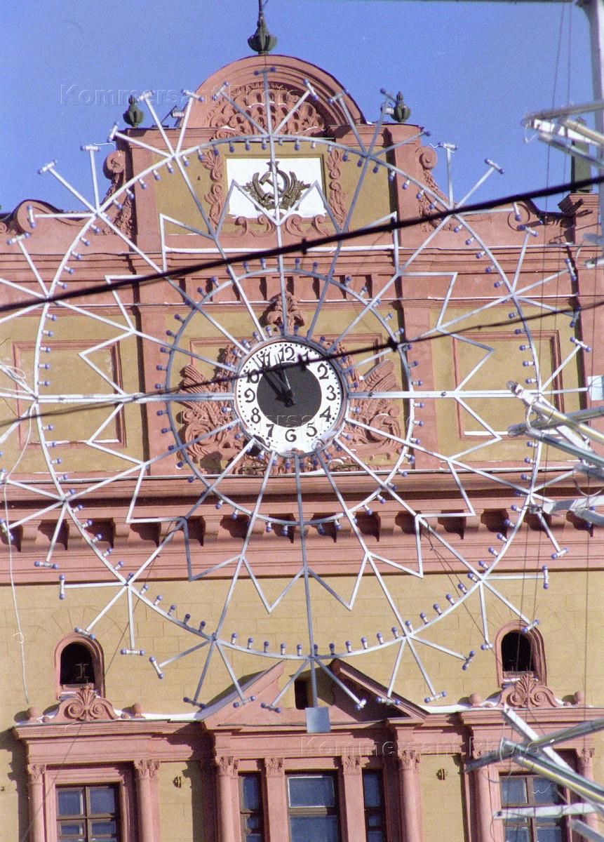 Advertising board on the wall of the deconstructed Moskva Hotel.