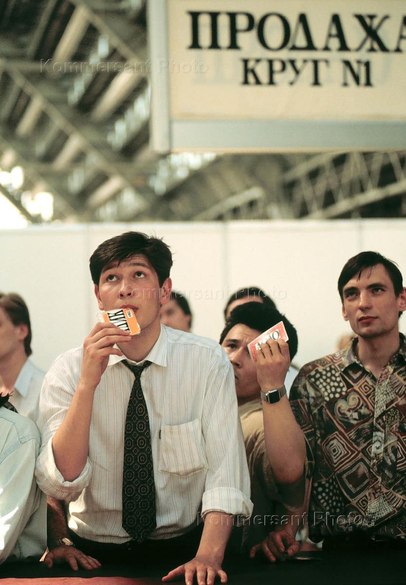 Moscow. Brokers during a trading session at Moscow Commodities' Exchange.