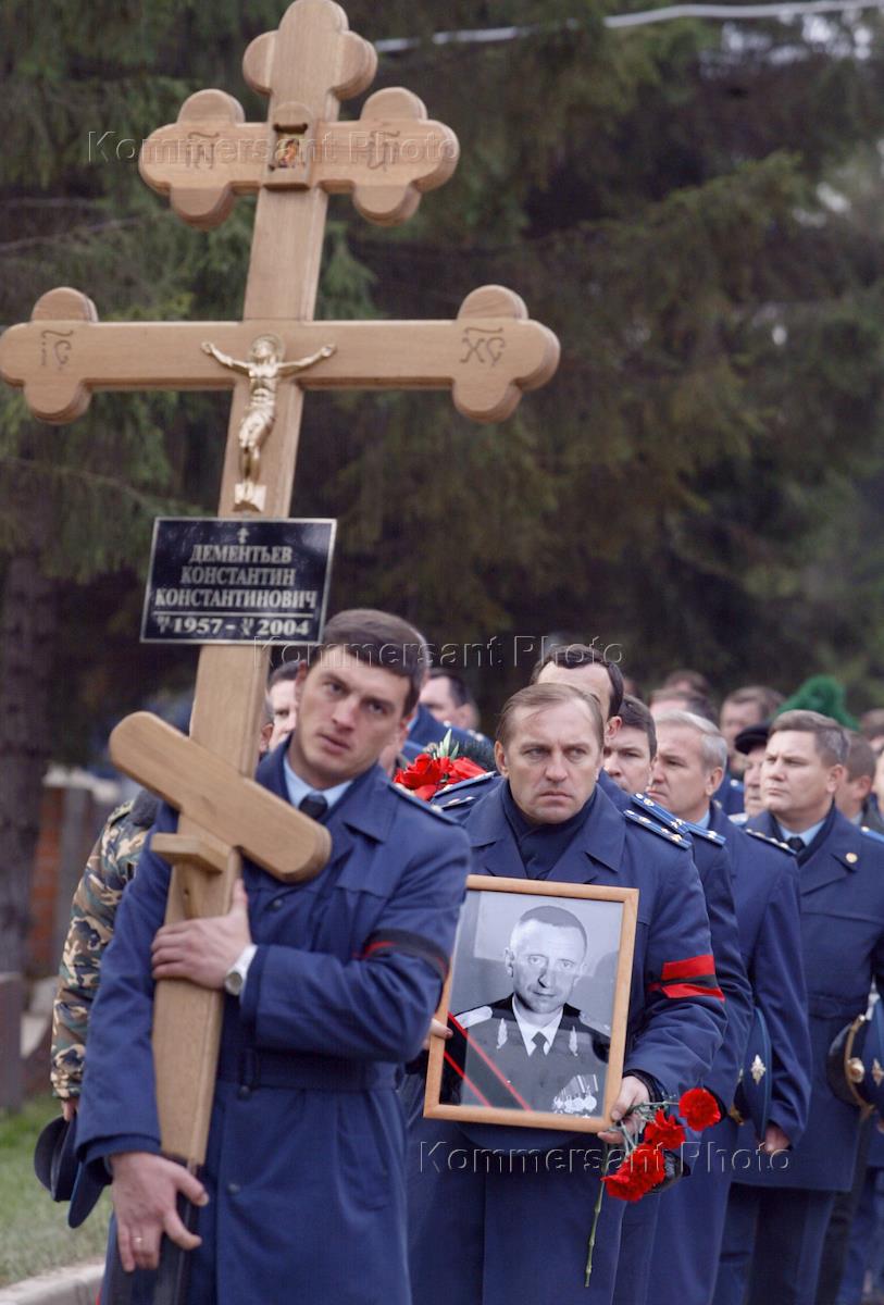 Церемония похорон заместителя командующего Дальней (стратегической) авиации Военно-воздушных сил (ВВС) России генерал-майора Константина Дементьева. Похороны состоялись на Николо-Ахангельском кладбище.
