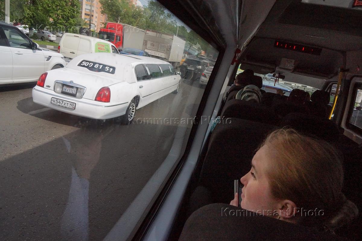 Жанровая фотография. Дорожное движение на улицах Москвы. Пассажиры в салоне микроавтобуса.