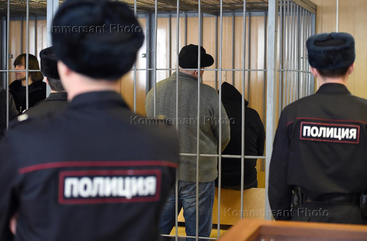 Оглашение срока наказания для обвиняемых Захария Калашова (Шакро Молодой) и криминального авторитета Андрея Кочуйкова (Итальянец) по делу о вымогательстве у владелицы ресторана Elements в центре Москвы состоялось в Никулинском районном суде. Обвиняемые по делу во время заседания суда.