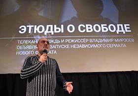 Закрытый показ независимого сериала нового формата "Этюды о свободе" телеканала "Дождь" в Центре Документального кино. Режиссер Владимир Мирзоев на показе.