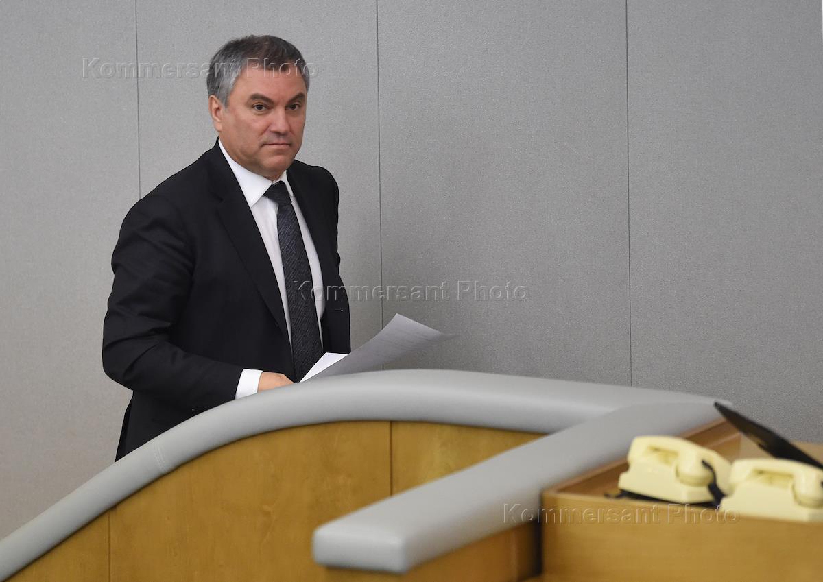 Пленарное заседание Государственной думы (ГД) России. Председатель ГД России Вячеслав Володин во время заседания.