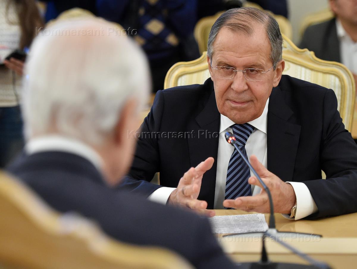 Министр иностранных дел России Сергей Лавров во время встречи со специальным представителем генерального секретаря ООН по Сирии Стаффаном де Мистурой. Встреча прошла в Доме приемов МИД России.