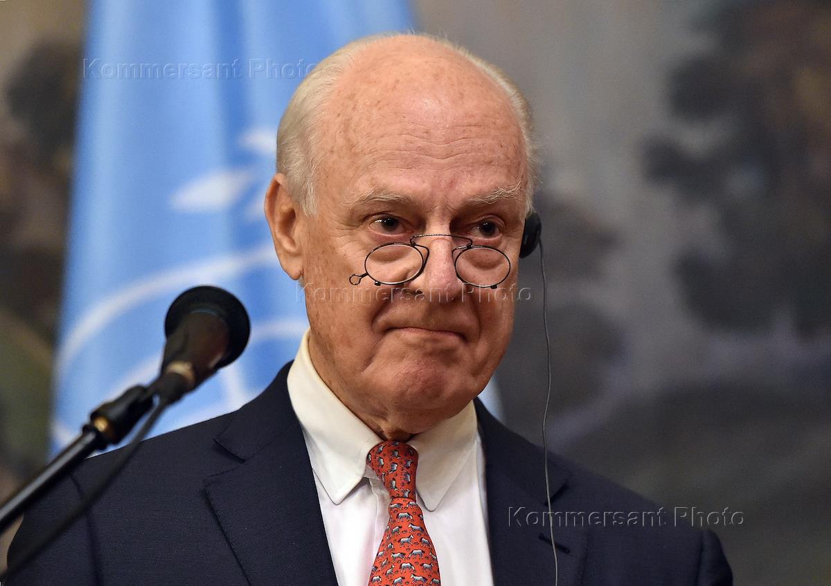 Специальный представитель генерального секретаря ООН по Сирии Стаффан де Мистура во время встречи с министром иностранных дел России Сергеем Лавровым. Встреча прошла в Доме приемов МИД России.