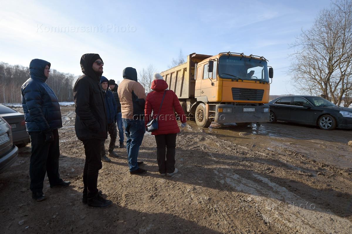 Ситуация вокруг полигона твердых бытовых отходов "Воловичи", расположенного в 5 километрах от Коломны. Глава Коломенского городского округа Денис Лебедев (второй справа) во время встречи с жителями Коломны.