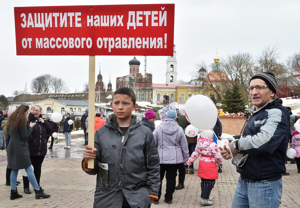 Митинг против полигона твердых коммунальных отходов "Ядрово" прошел на площади у здания администрации Волоколамского района. Активисты во время раздачи белых воздушных шаров с хэштегом #волоколамскзадыхается .