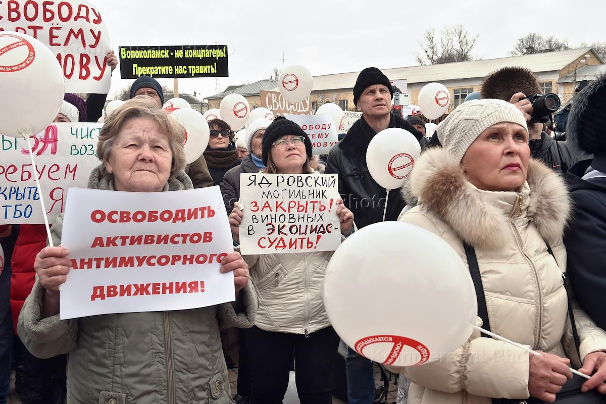 Митинг против полигона твердых коммунальных отходов "Ядрово" прошел на площади у здания администрации Волоколамского района. Активисты во время раздачи белых воздушных шаров с хэштегом #волоколамскзадыхается .