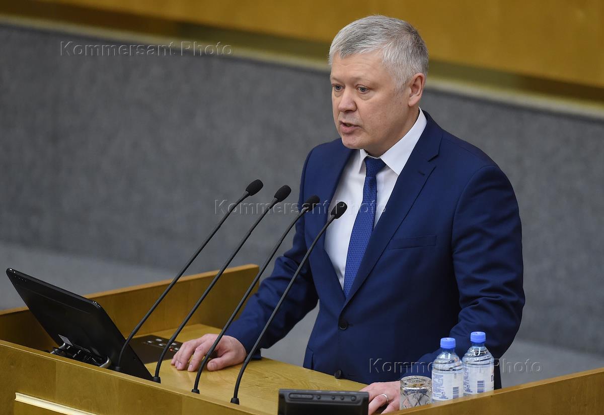 Пленарное заседание Государственной думы (ГД) России. Справа налево: председатель комитета Государственной думы России по природным ресурсам, собственности и земельным отношениям Николай Николаев, член Комитета ГД по финансовому рынку Андрей Козенко и заместитель председателя Государственной думы России Ольга Тимофеева во время заседания.