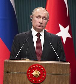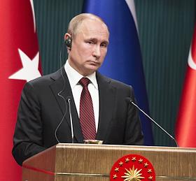 Рабочая поездка президента России Владимира Путина в Турцию. Президент России Владимир Путин во время пресс-конференции по итогам встречи с президентом Турецкой Республики Реджепом Тайипом Эрдоганом во Дворце президента Турции.