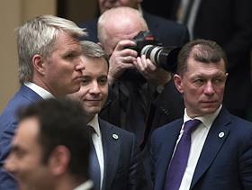 Рабочая поездка президента России Владимира Путина в Турцию. Слева направо:министр спорта России Павел Колобков, министр связи и массовых коммуникаций России Николай Никифоров и министр труда и социальной защиты России Максим Топилин на церемонии подписания совместных документов по итогам российско-турецких переговоров во Дворце президента Турции.