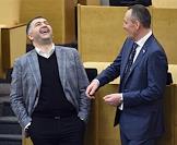Пленарное заседание Государственной думы (ГД) России. Лидер Либерально-демократической партии России (ЛДПР) Владимир Жириновский (слева) и член комитета ГД России по информационной политике, информационным технологиям и связи Вадим Деньгин (справа) перед началом заседания.