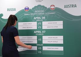 Жеребьевка матча Группы I (зона Европа/Африка) командного чемпионата мира между мужскими сборными командами на Кубок Дэвиса между сборными России и Австрии. Турнирная таблица участников матча.
