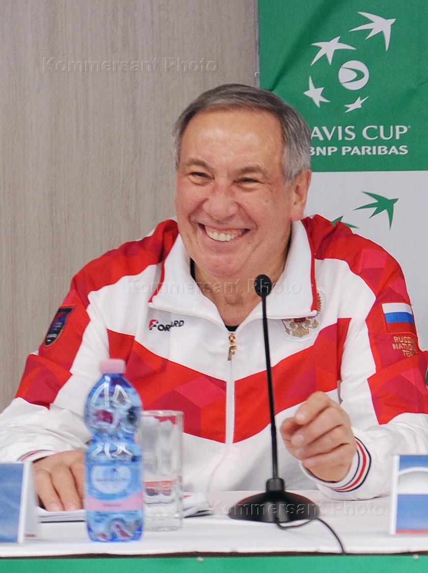 Жеребьевка матча Группы I (зона Европа/Африка) командного чемпионата мира между мужскими сборными командами на Кубок Дэвиса между сборными России и Австрии. Президент Федерации тенниса России Шамиль Тарпищев во время жеребьевки.