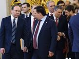 Заседание Государственного совета по вопросу развития конкуренции прошло в Георгиевском зале Большого Кремлевского дворца. Слева направо: президент Республики Татарстан Рустам Минниханов, глава - председатель правительства Республики Тыва Шолбан Кара-оол и глава Республики Хакасия – председатель правительства Республики Хакасия Виктор Зимин перед началом заседания.