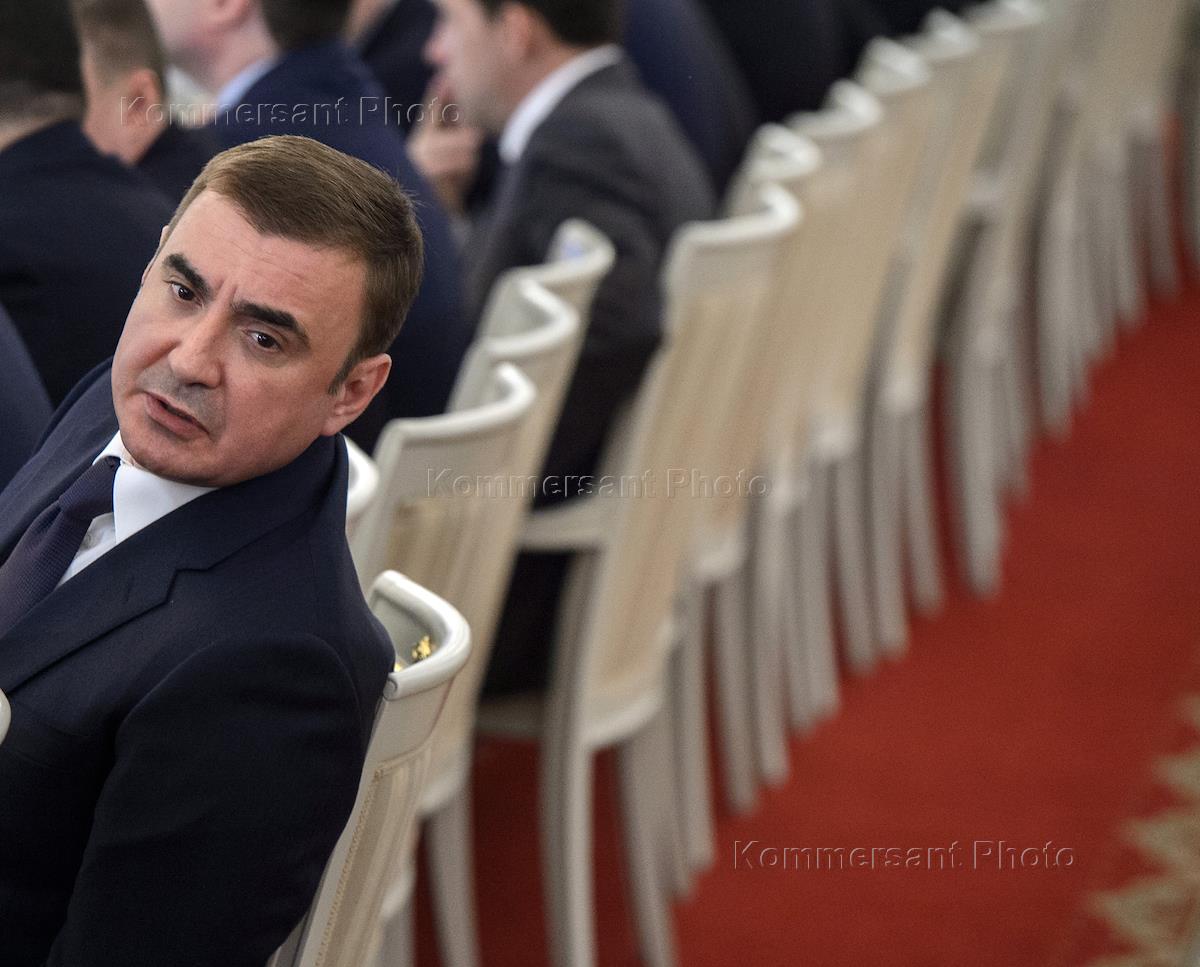 Заседание Государственного совета по вопросу развития конкуренции прошло в Георгиевском зале Большого Кремлевского дворца. Губернатор Тульской области Алексей Дюмин перед началом заседания.