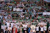 Континентальная хоккеная лига (КХЛ). Кубок Гагарина. 4-й матч финальной серии. Матч между командами "Трактор" (Челябинск) - "Ак Барс" (Казань). Болельщики команды "Ак Барс" на трибуне во время матча.