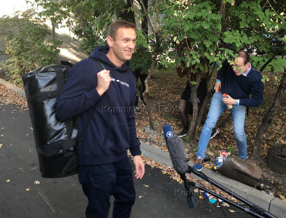 Основатель Фонда борьбы с коррупцией Алексей Навальный после выхода из спецприемника №1 в Москве, где отбывал 30 суток ареста.