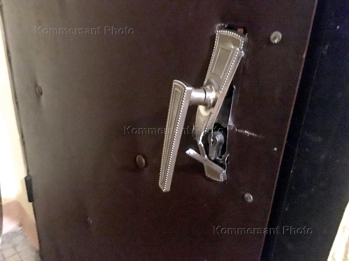 Ситуация у дома главного редактора The Insider (признано Минюстом России СМИ-иноагентом) Романа Доброхотова, в квартире которого проходит обыск по делу о клевете на нидерландского журналиста Макса ван дер Верффа. Выломанная ручка двери квартиры.