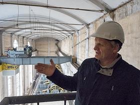 Эксперт Дубровин Владимир Александрович в машинном зале Рыбинской ГЭС после установки нового ротора на первом гидроагрегате.