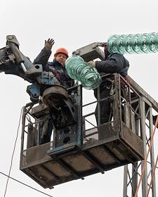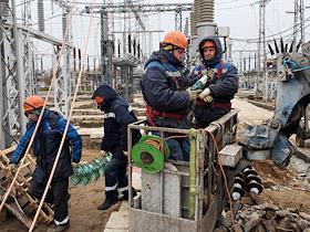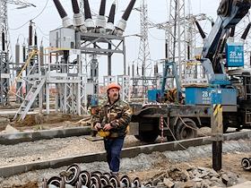 Монтажные работы на участке открытого распределительного устройства (ОРУ) Нижегородской ГЭС.