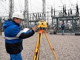 Инженер-геодезист Александр Дуничев делает нивелировку отметок вновь установленных фундаментов опор открытого распределительного устройства (ОРУ) Нижегородской ГЭС.