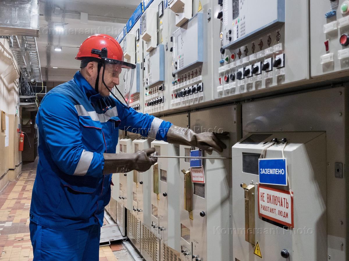 Электромонтер Нижегородской ГЭС Погодин Сергей Владимирович. Подготовка к выкатыванию тележки вакуумного выключателя в ремонтное положение.
