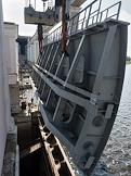 Перемещение нового сегментного затвора для замены на водосливной плотине Угличской ГЭС.