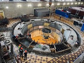 Машинный зал Нижегородской ГЭС. Ремонтные работы на гидротурбинном генераторе.