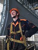 Слесарь-монтажник Сергей Кудряшов в процессе подъема нового сегментного затвора для замены на водосливной плотине Угличской ГЭС.