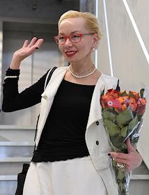 Актриса Евдокия Германова во время сбора труппы в связи с назначением актера Владимира Машкова художественным руководителем Московского театра Олега Табакова ("Табакерка").