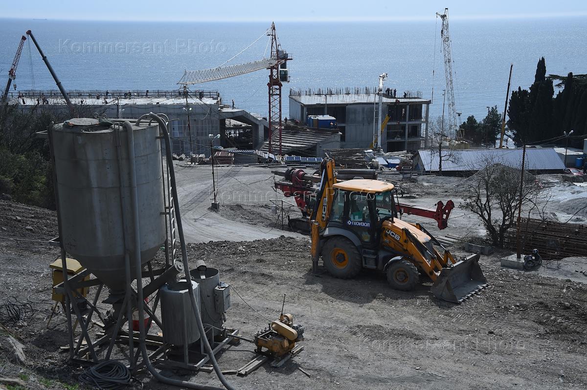 Строительство нового лагеря "Солнечный" на территории МДЦ "Артек". Спецтехника на строительстве.