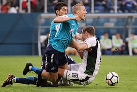 Российская премьер-лига. 25-го тур. Матч между командами "Зенит" (Санкт-Петербург) и Краснодар (Краснодар) прошел на стадионе "Санкт-Петербург".