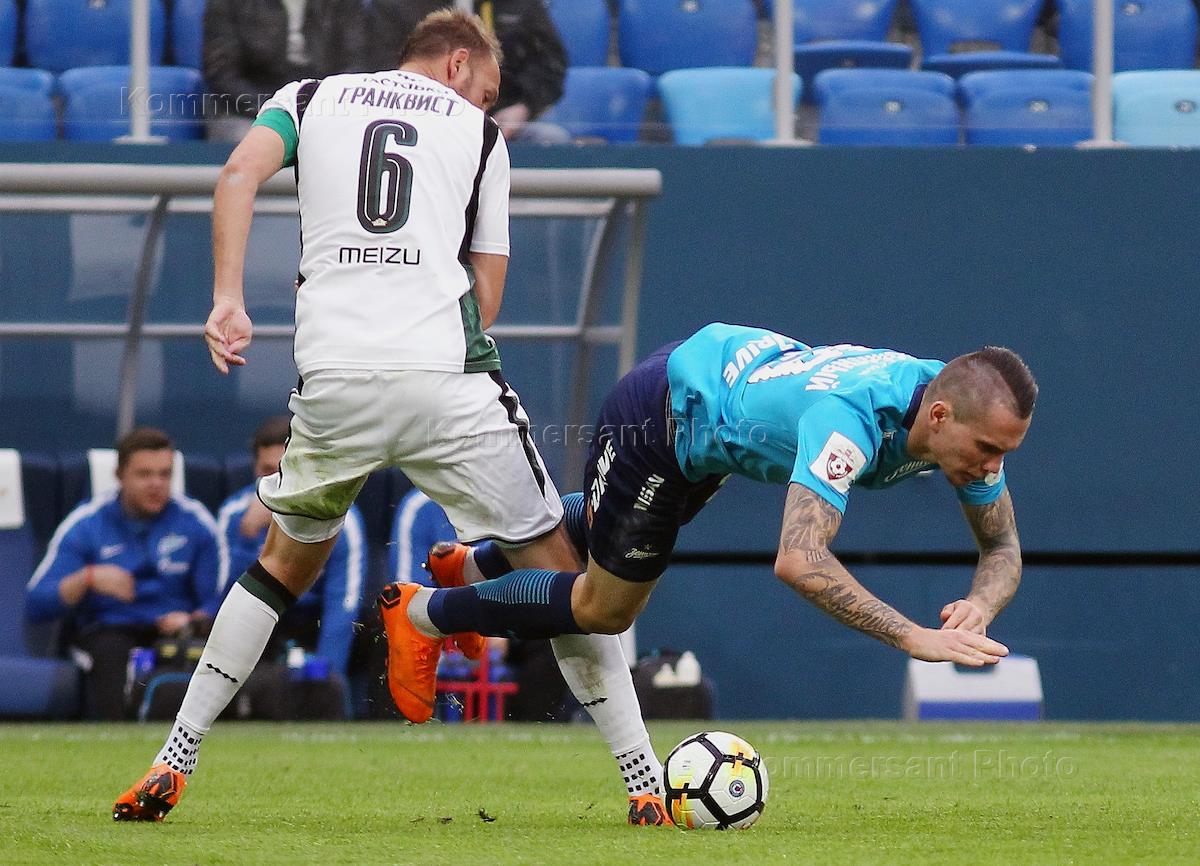 Российская премьер-лига. 25-го тур. Матч между командами "Зенит" (Санкт-Петербург) и Краснодар (Краснодар) прошел на стадионе "Санкт-Петербург". Игрок команды "Краснодар" Андреас Гранквист (слева) во время матча.