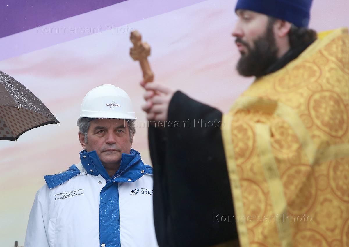 Генеральный директор ЗАО ССМО "ЛенСпецСМУ" Геннадий Щербина на церемонии заливки первого бетона, посвященной началу строительства объекта ЛенСпецСМУ жилого квартала "Галактика" в Санкт-Петербурге.