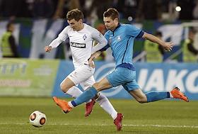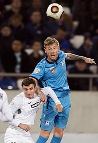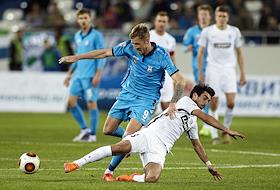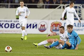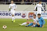 Тестовый футбольный матч между командами "Балтика" (Калининград) и "Крылья Советов" (Самара) прошел на стадионе "Калининград-Арена". Игрок команды "Балтика" Максим Григорьев (справа) во время матча.