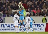 Тестовый футбольный матч между командами "Балтика" (Калининград) и "Крылья Советов" (Самара) прошел на стадионе "Калининград-Арена". Вратарь команды "Крылья Советов" Евгений Конюхов во время матча.