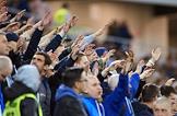 Тестовый футбольный матч между командами "Балтика" (Калининград) и "Крылья Советов" (Самара) прошел на стадионе "Калининград-Арена". Болельщики команды "Крылья Советов" на зрительской трибуне во время матча .